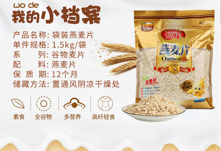 纯燕麦片,无糖,无添加剂,适合多种人群,高膳食纤维,辅助肠道蠕动,老年人代餐,女性减肥佳品