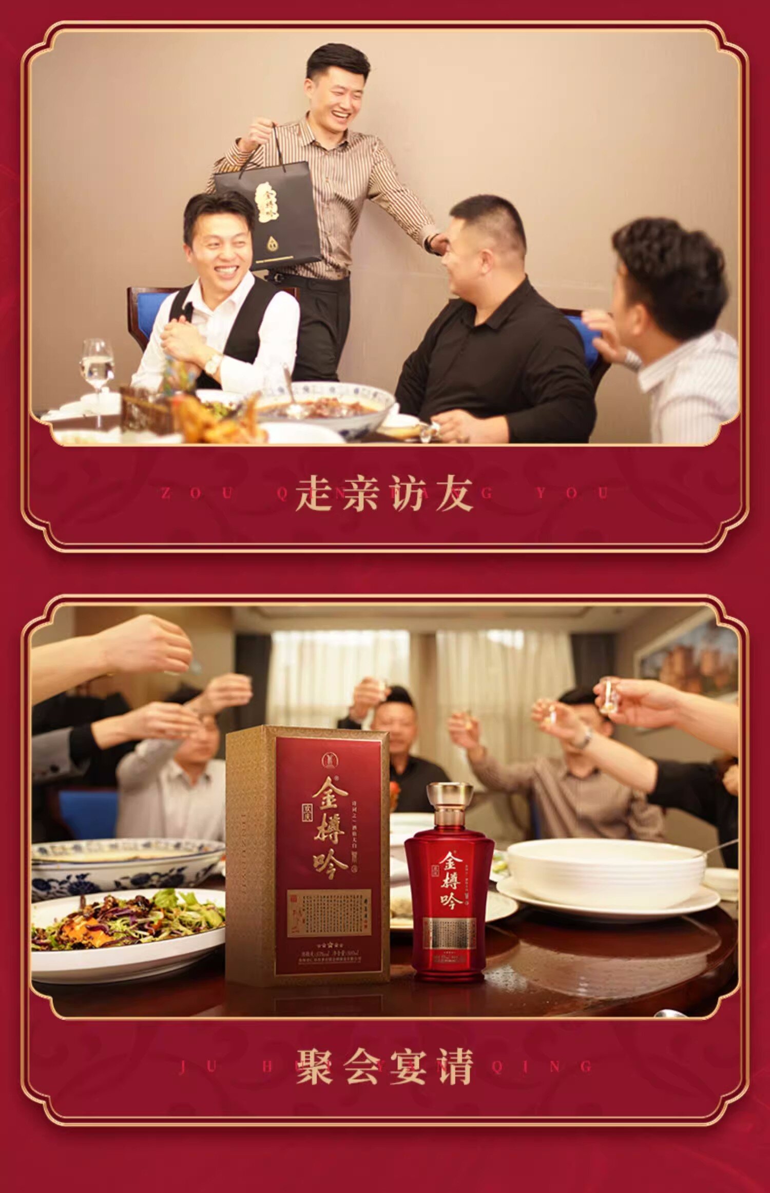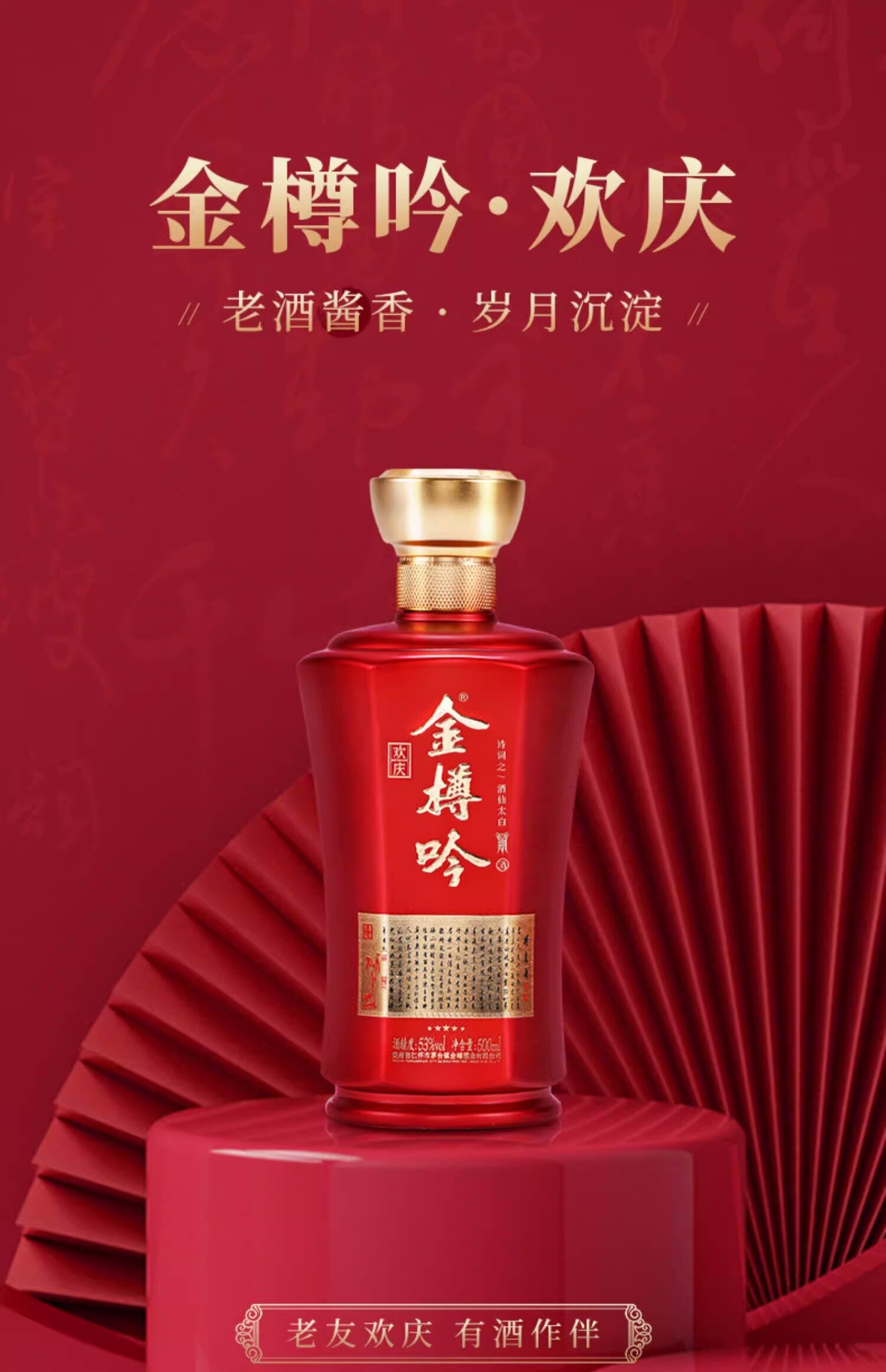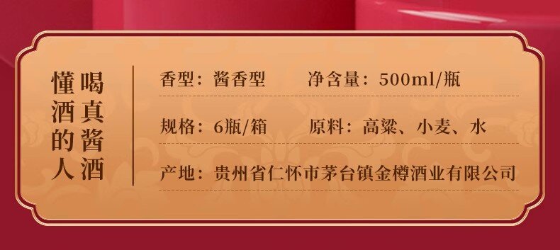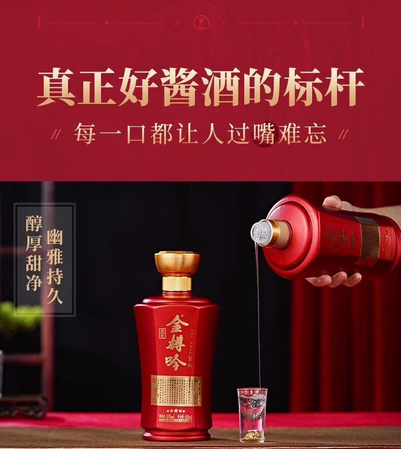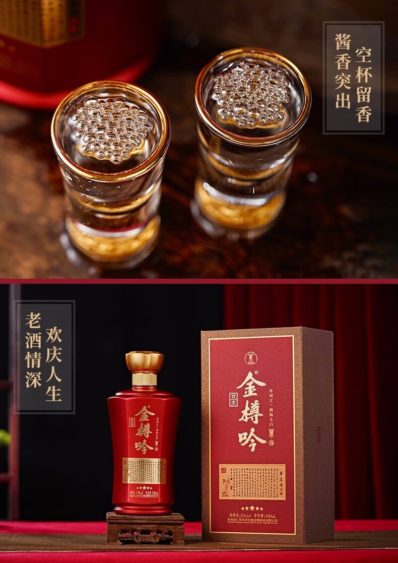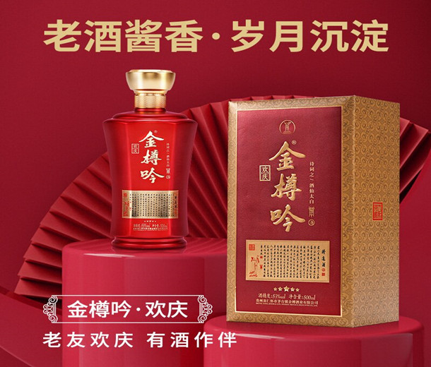 金樽吟欢庆酱香型白酒53度500ml瓶装贵州纯粮食酒水礼盒装