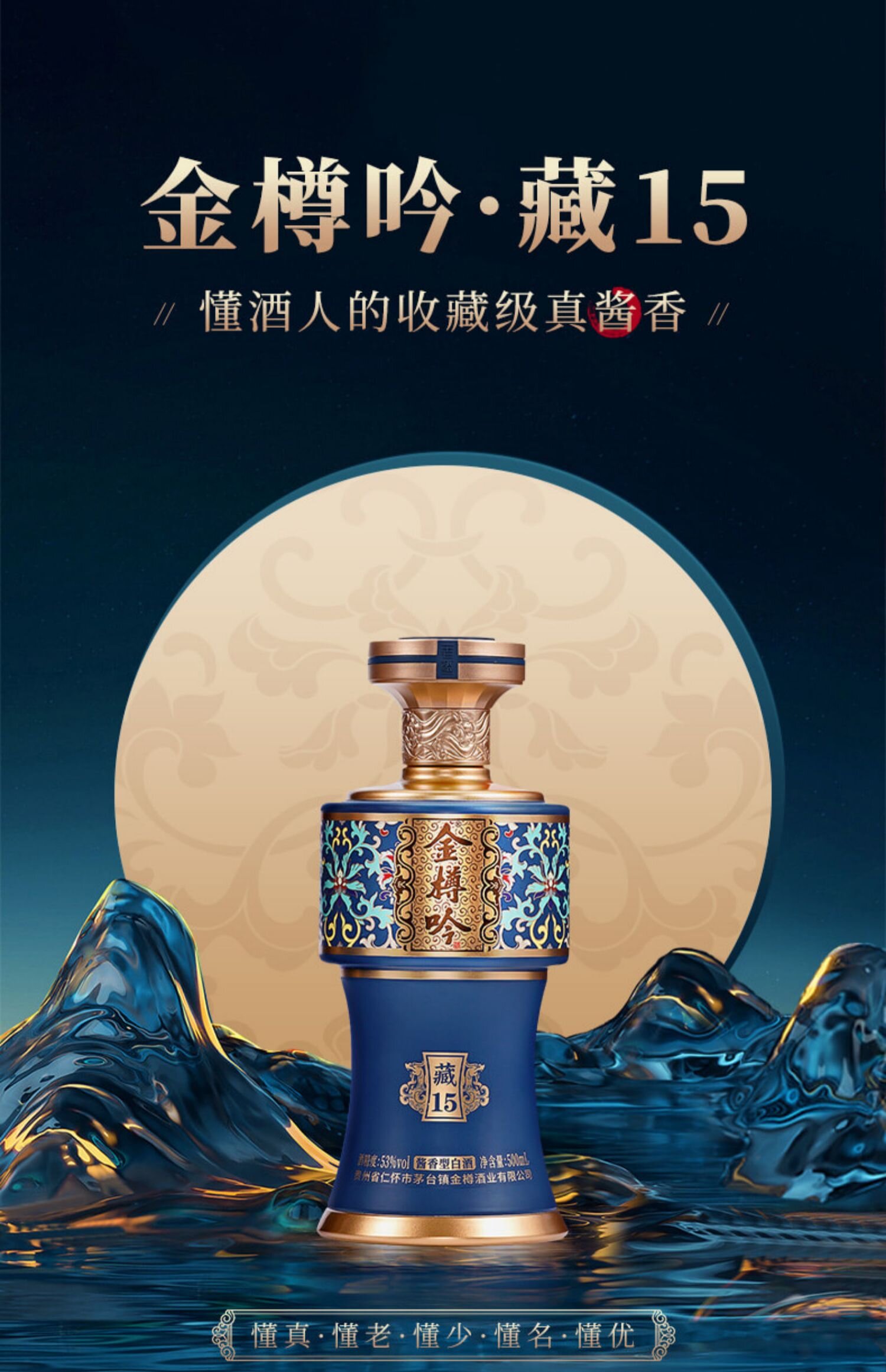 金樽吟藏15酱香型白酒53度500ml瓶装贵州纯粮食礼盒装