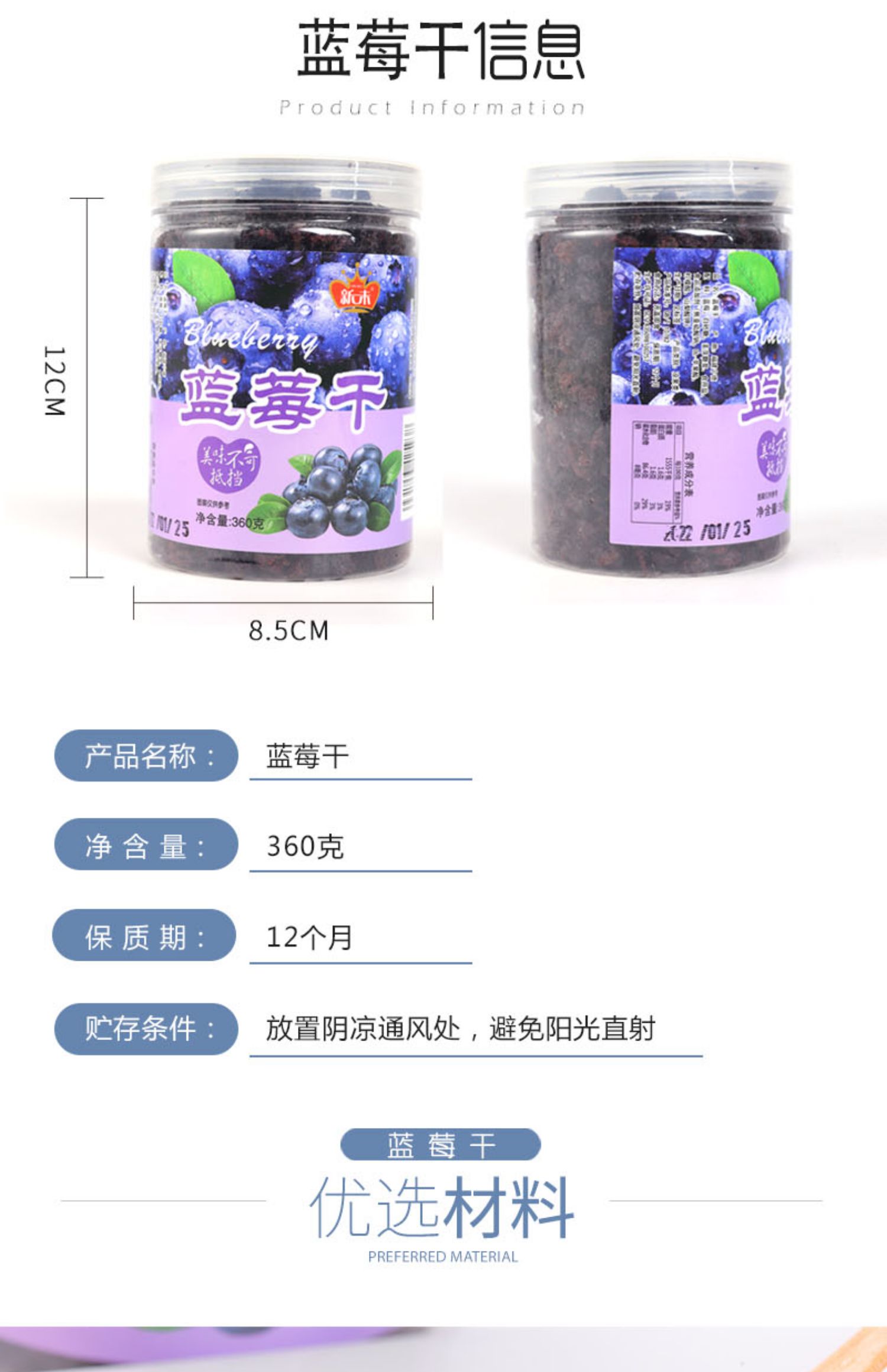 新未蓝莓干360g/罐