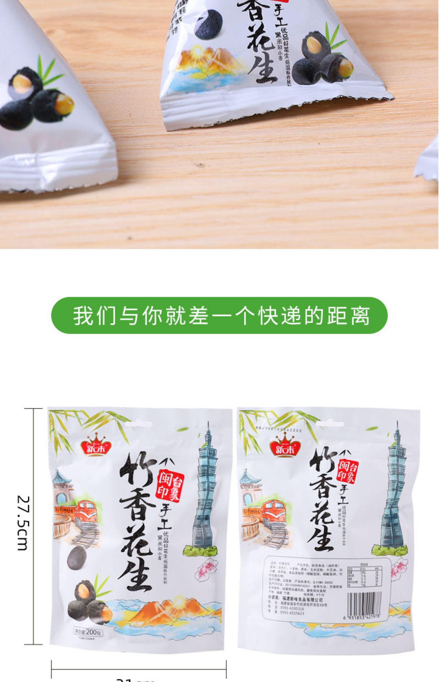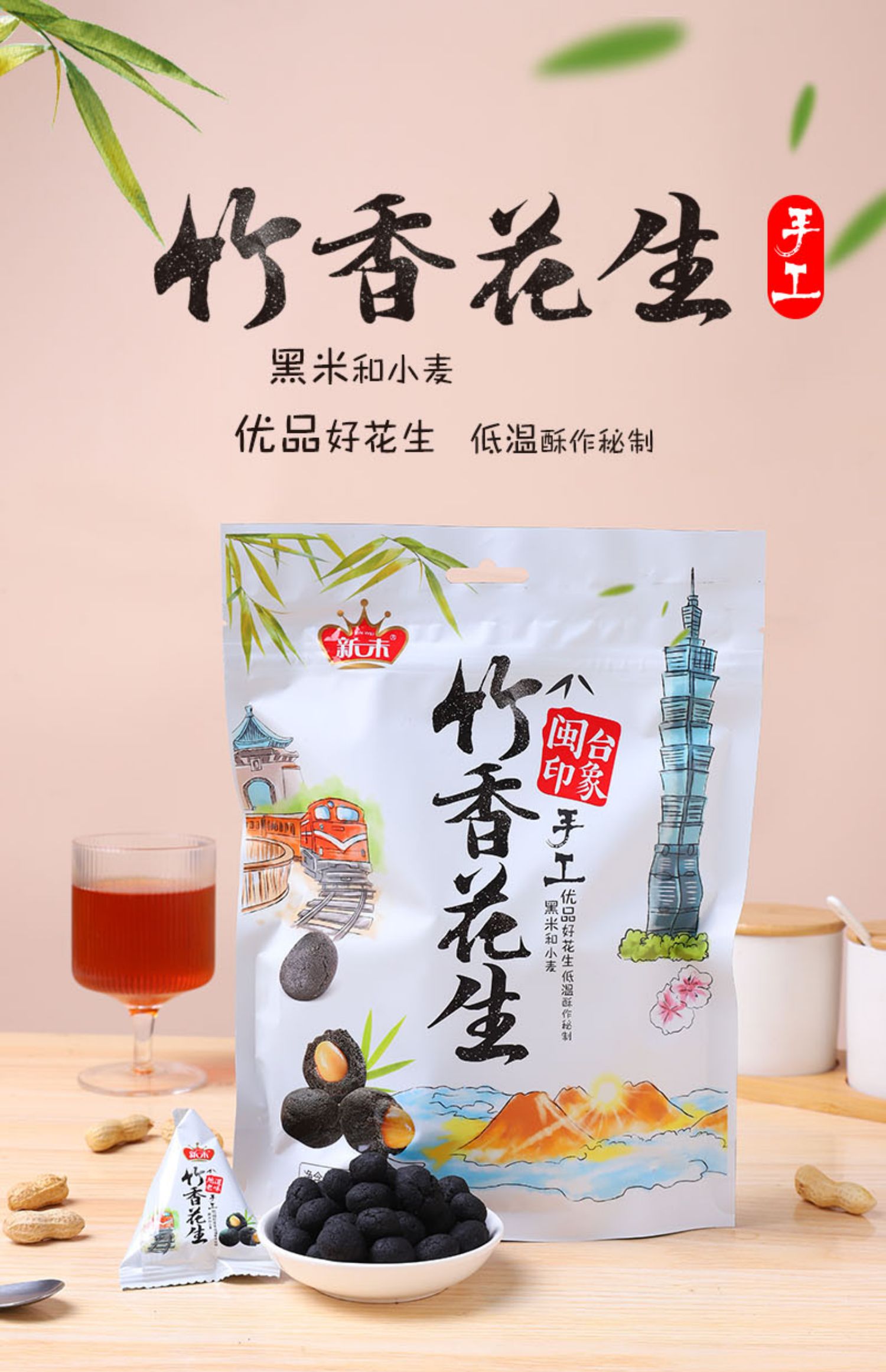 新未竹香花生200g炭烧竹香黑米多味花生独立小包闽台风味零食特产