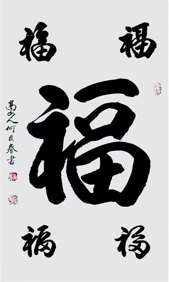 书法作品 六尺对开 400 * 690 cm 何友春书法家简介 英文字证书是“加拿大皇家艺术学院东方艺术研究中心特聘客座教授”