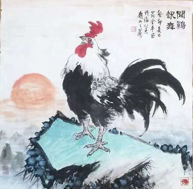 国画:《闻鸡起舞》