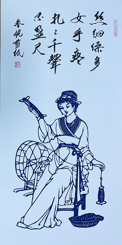 剪纸工艺是世界级非物质文化遗产,中国剪纸起源于汉代公元前206年的民间工艺,唐朝以后民间手工剪纸陆续从中原流传全国各地,普遍都以窗花、鞋花、肚脐花和福字、喜字、小动物为主,逐步传承下来。春妮郑惠贞从小就喜欢剪纸,6岁就跟随祖母学习剪纸,传授技艺、她手巧灵活、好学执着,一把小小剪刀与她结下深厚情缘。她把剪纸作为生活中的一种乐趣,为了使剪纸更加具有艺术魅力和价值感,她在传统剪纸的基础上,致力创新、与时俱进,她把剪纸工艺同名家书画和其他艺术元素结合起来,使剪纸工艺升华为具有珍藏价值、体现剪纸特色的高端艺术书画作品。剪其所见、剪其所想、以剪纸为画、突出主题,配搭名家书法绘画或融入紫砂壶中,创造出一种有剪纸独特风格的艺术作品,展示在世人面前。比如:春妮为建党90周年之际,创作了一副2米乘1米的大幅剪纸《一代伟人》作品,由何友春配题书法,作为党的生日献礼。引起业界人士广泛关注和赞赏,并在电视、报纸进行相关报道。春妮剪纸均同何友春老师书法搭配,自成一种艺术风潮,春妮就是用小小剪刀,剪出各种美丽精湛的画卷,活灵活现。《一代伟人》、《开国大典》、《龙凤吉祥》、《漓江萧女》、《李渔》、《梅兰竹菊》《天下第一福》和大型剪纸长卷《三坊七巷》以及《四大美女》《刘洋飞天》《关公》 《吕祖》 《观音》等剪纸作品都出自春妮之手,深受各界领导的喜欢和赞赏。春妮剪纸是当代剪纸艺术的超女,她勤奋努力、精心耕耘,让这朵剪纸之花,更加灿烂阳光。