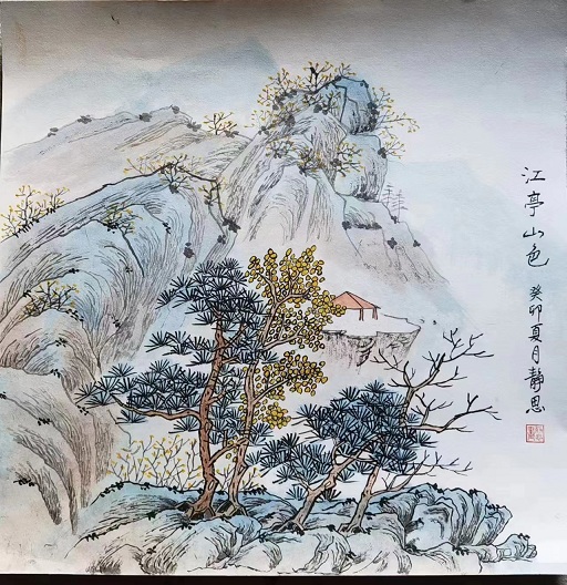 工笔画《江亭山色》 规格 550 * 550 cm