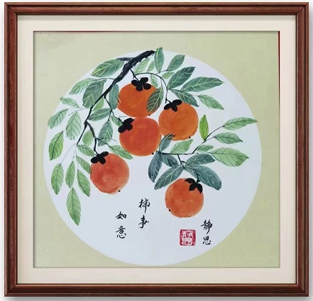 国画《柿事如意》 规格 380 * 380 cm