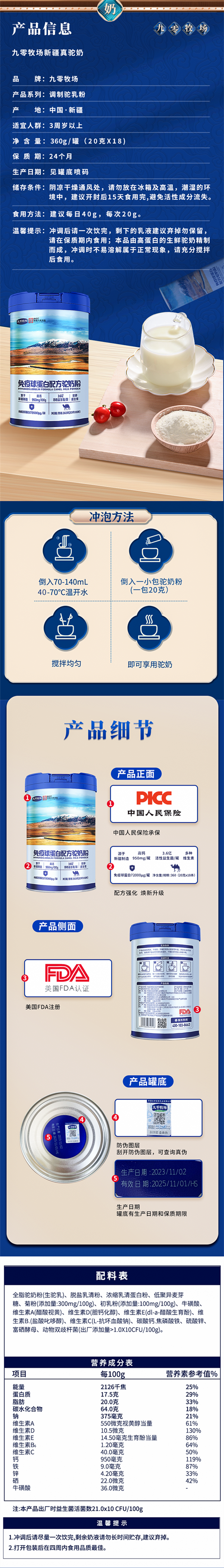 免疫球蛋白驼奶粉360g*2罐
