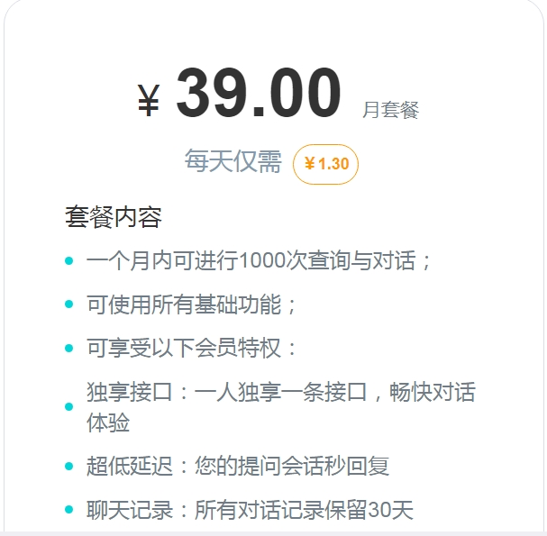 1、AI工具包月使用套餐:39元/月